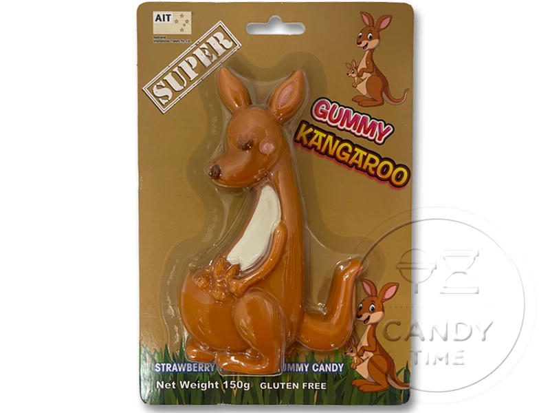 A super-sized, Strawberry flavoured gummy candy, in the shape of a Kangaroo with a little joey in pouch!
