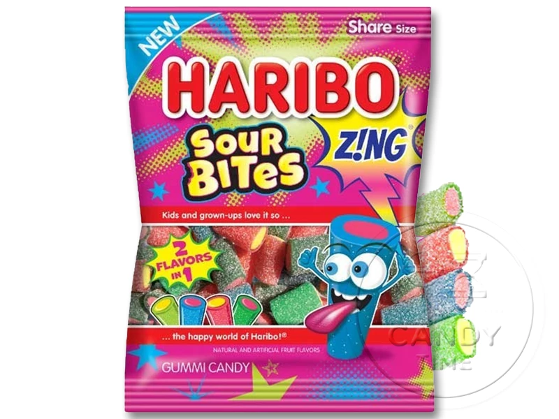 The electrifying flavour for HARIBO Z!NG Sour Bites will send your taste buds on a wild ride. Each bite contains two exciting flavours like Strawberry & Lemon, Watermelon & Red Raspberry, Lime & Lemon, and Blue & Red Raspberry, all wrapped in a sugary, sour coating. Experience the flavour of fun with each one of HARIBO ZING Sour Bites!