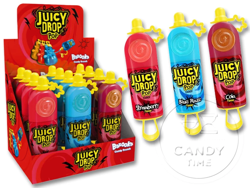 Juicy Drop is a fun, interactive, and great tasting treat that lets you control the flavour intensity via super sour liquid. Juicy Drop POP flavours include Strawberry, Raspberry and Cola.