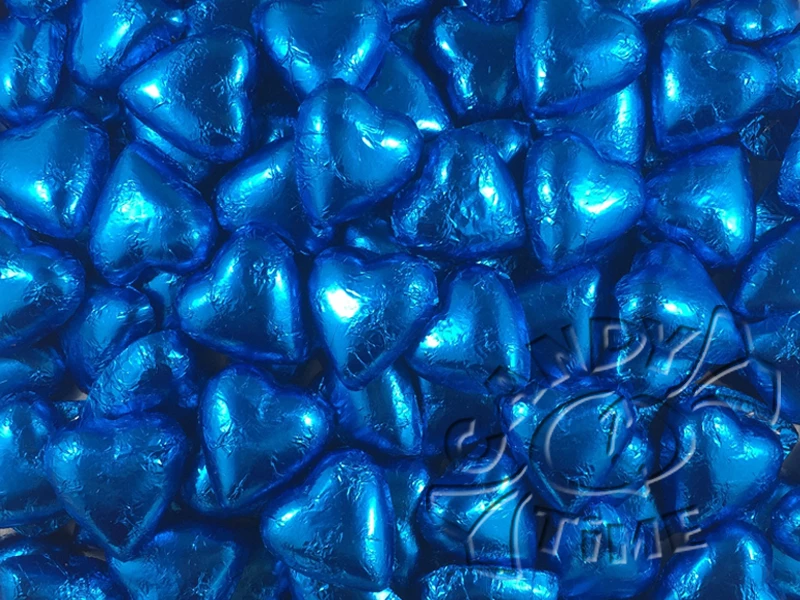 Milk Chocolate Foil Hearts 1kg Bag Blue