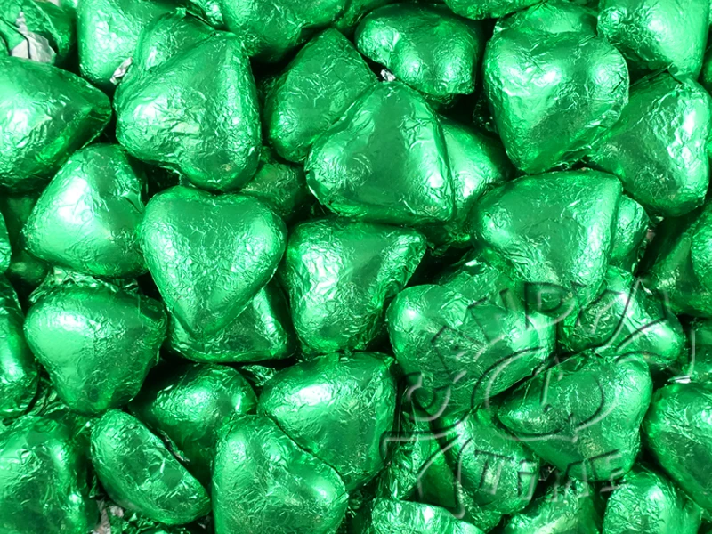 Milk Chocolate Foil Hearts 1kg Bag Green