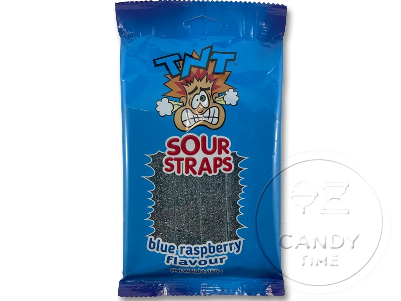 TNT Sour Straps Blue Raspberry feature a pack of sour blue raspberry classic straps for that sweet and sour hit!